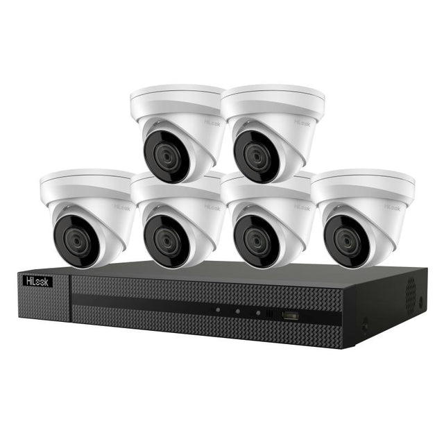 Six 4MP Fixed Turret network cameras with efficient H.265 compression technology